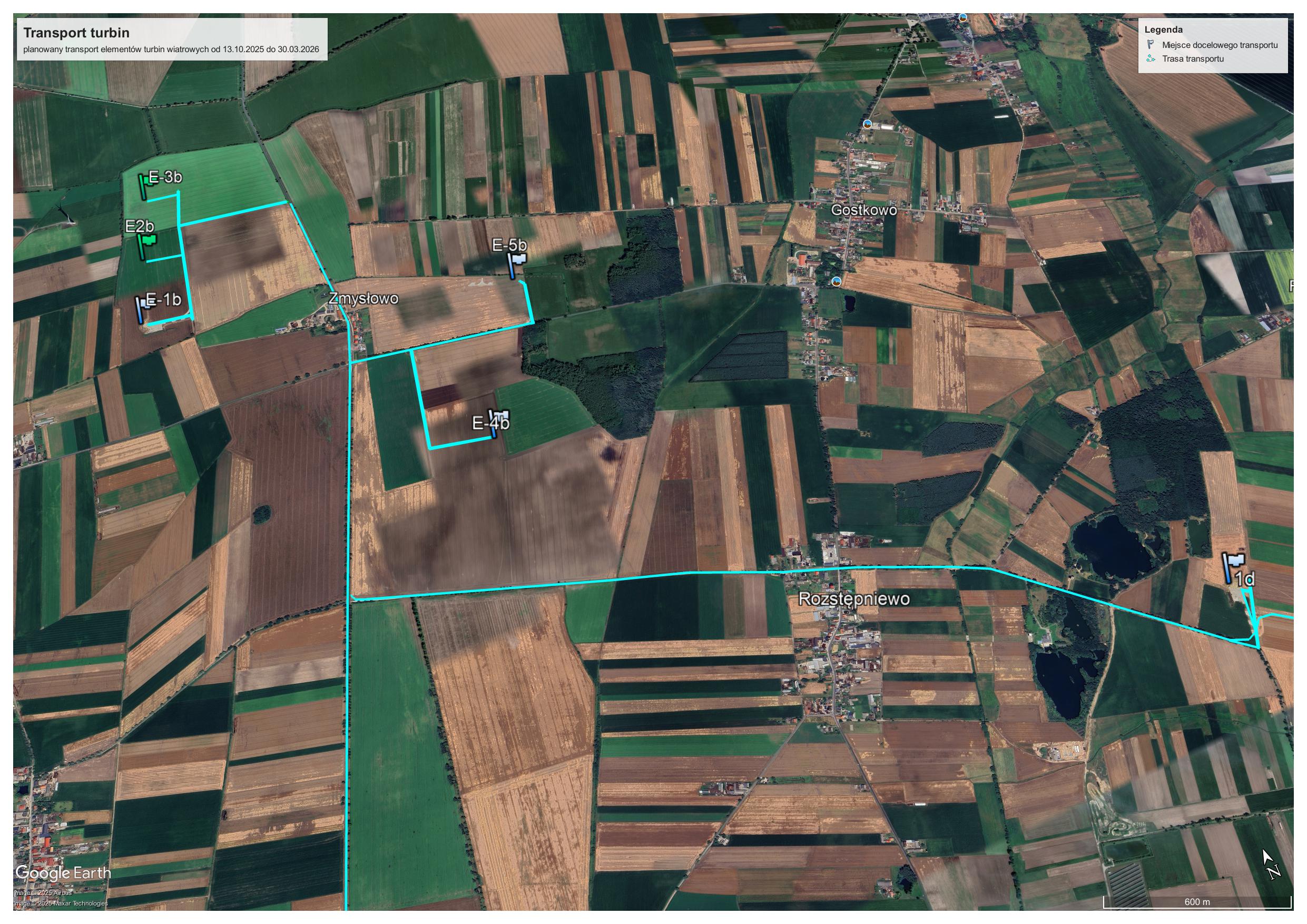 Informujemy, że w okresie od 13 października 2025 r. do 30 marca 2026 r. przez miejscowości Gostkowo, Kołaczkowice, Oczkowice, Konary , Topólka, Dłoń, Melanowo, Zmysłowo, Rozstępniewo, Roszkowo i Sobiałkowo, Annopol, będzie odbywał się transport turbin wiatrowych.