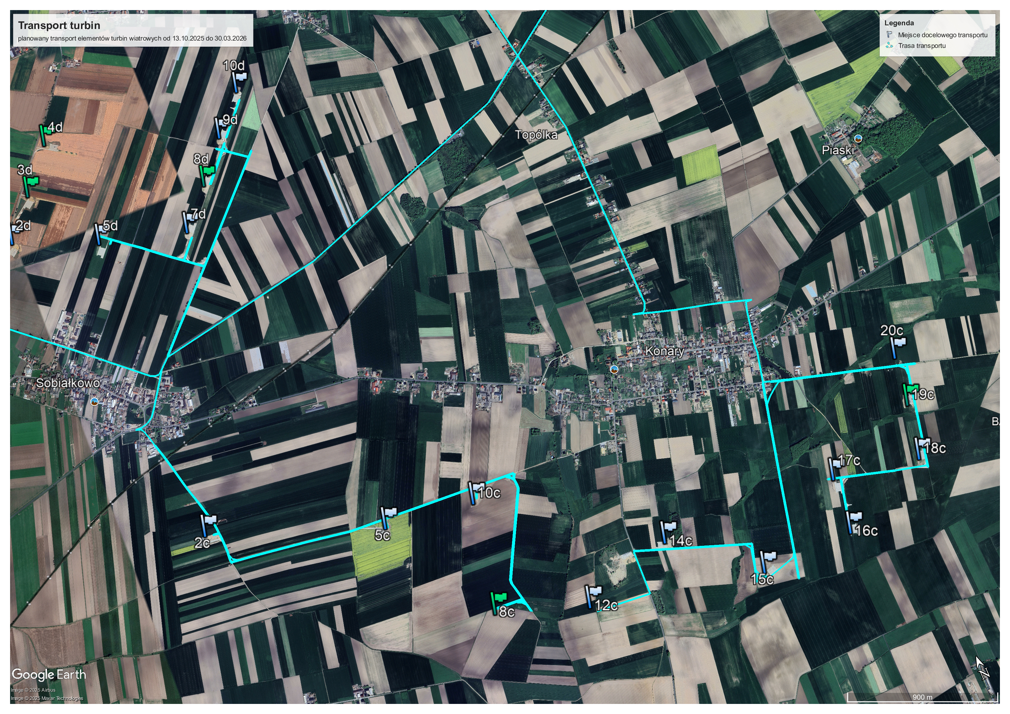 Poniżej udostępniamy mapy z wizualizacjami planowanej trasy transportu turbin.